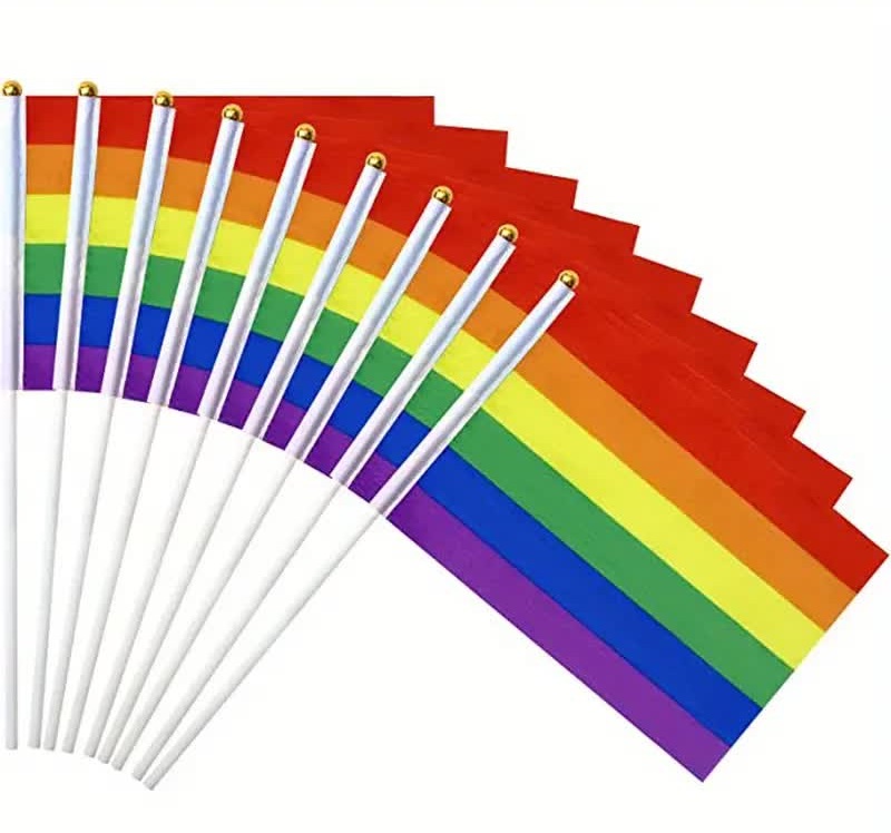10 Fahnen Regenbogen Fahne mit Holzstange | Streetparade & Loveparade