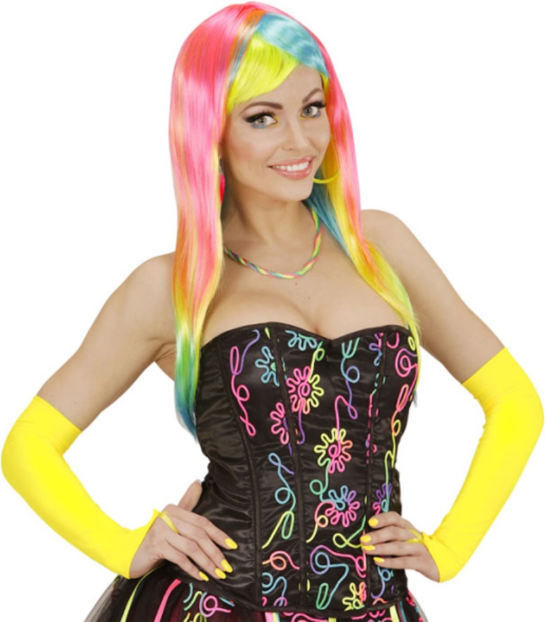Punker Rocker Nietenhandschuhe neongelb
