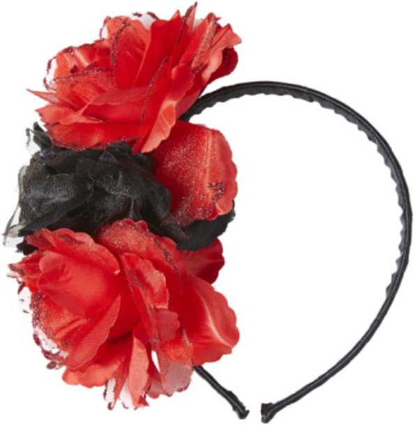 rote + schwarze Rosen Haareif mit Blumen Tag der Toten Spanierin