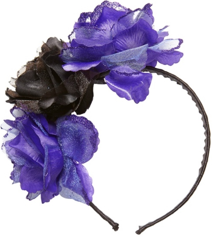 violette + schwarze Rosen Haareif mit Blumen Tag der Toten