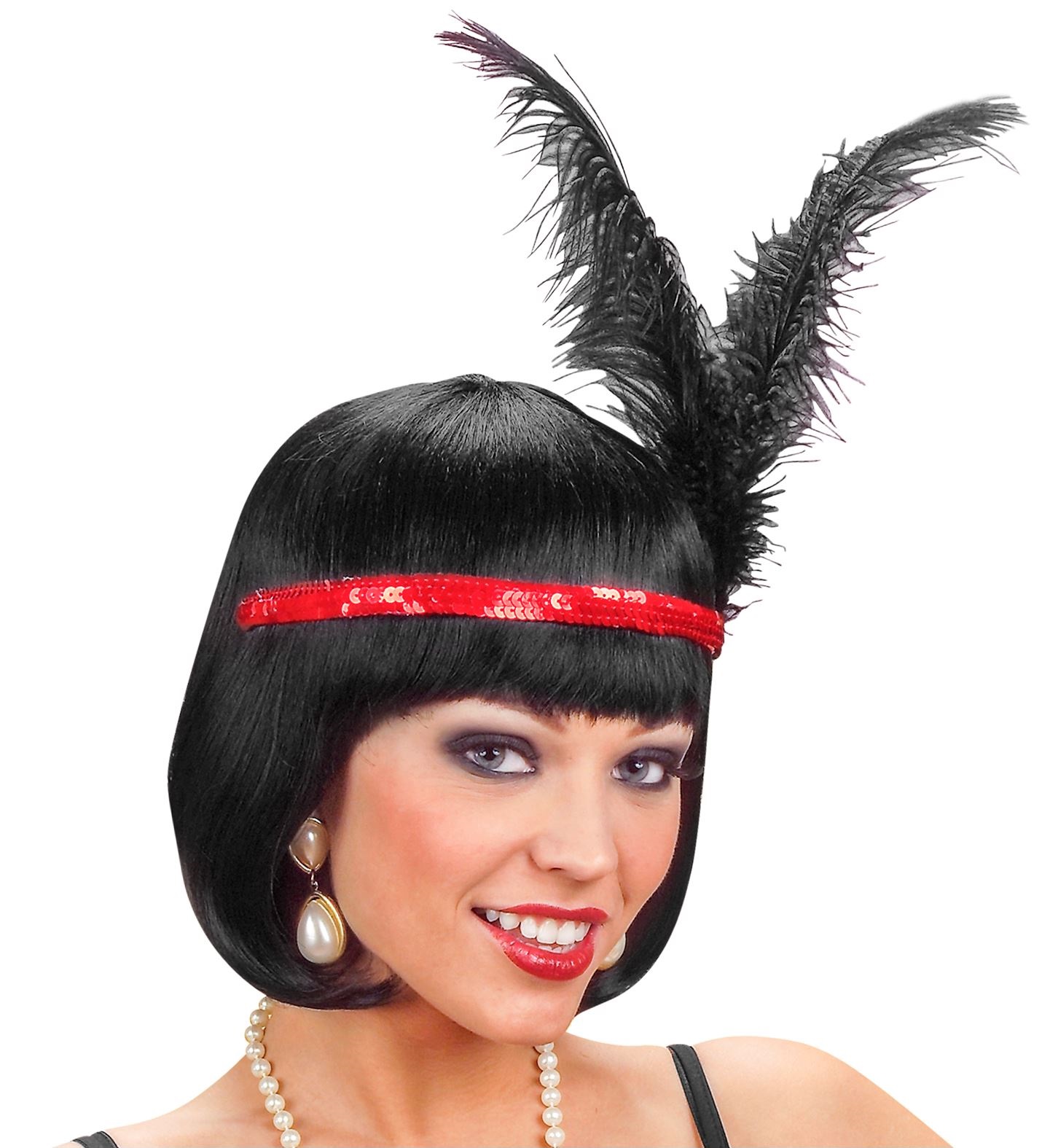 Great Gatsby Haarschmuck | roter Pailletten-Haareif mit schwarzen Federn