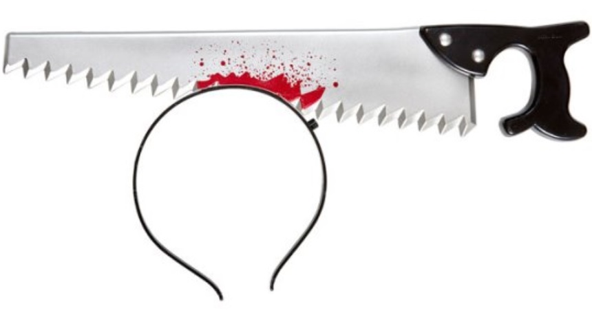 Säge mit Blut durch den Kopf