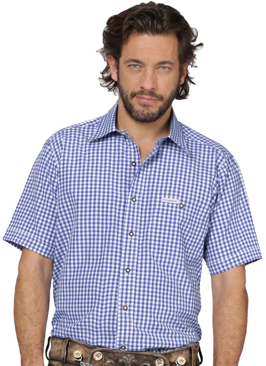Oktoberfest Hemd kurzarm blau-weiss kariert