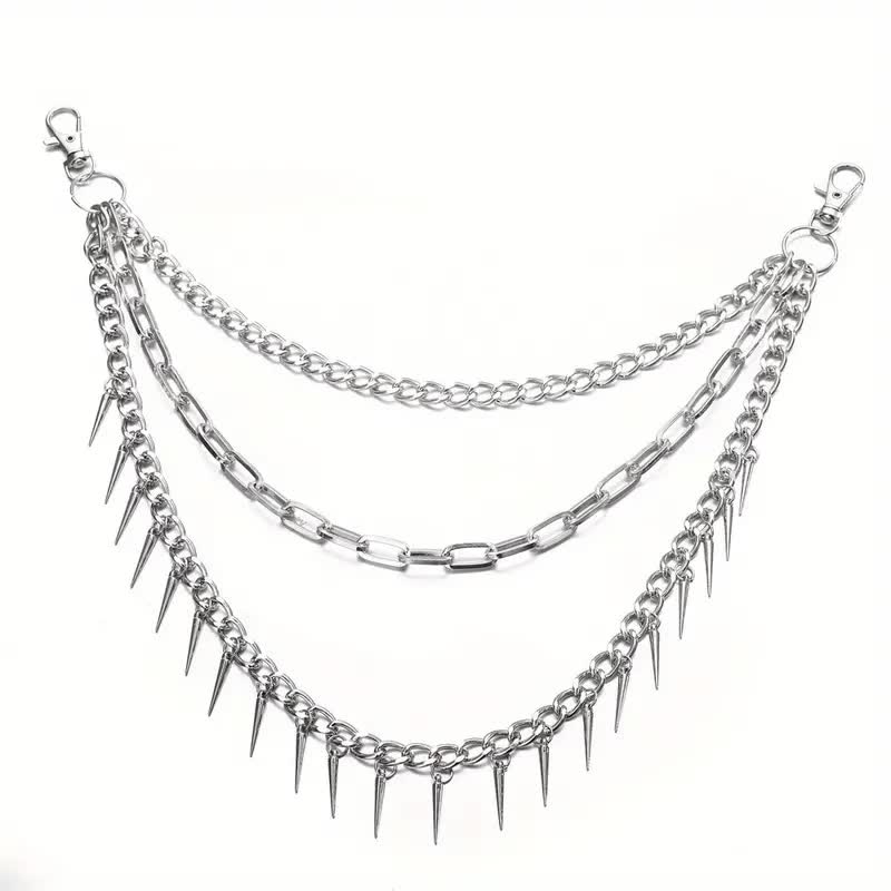 Hosenkette Nietenkette mit Spikes für Punker Rocker Biker silber | 80s Party & Cyberpunk