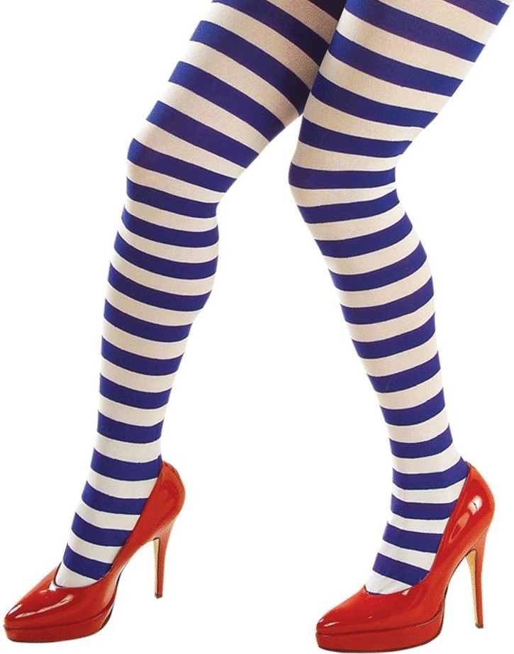 blau-weisse Ringelstrumpfhosen blickdicht